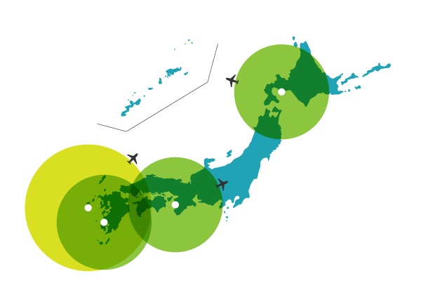 急なエラー対応、故障修理には当社の九州、関西、北海道にある4つの拠点から、いつでもどこへでも対応いたします。